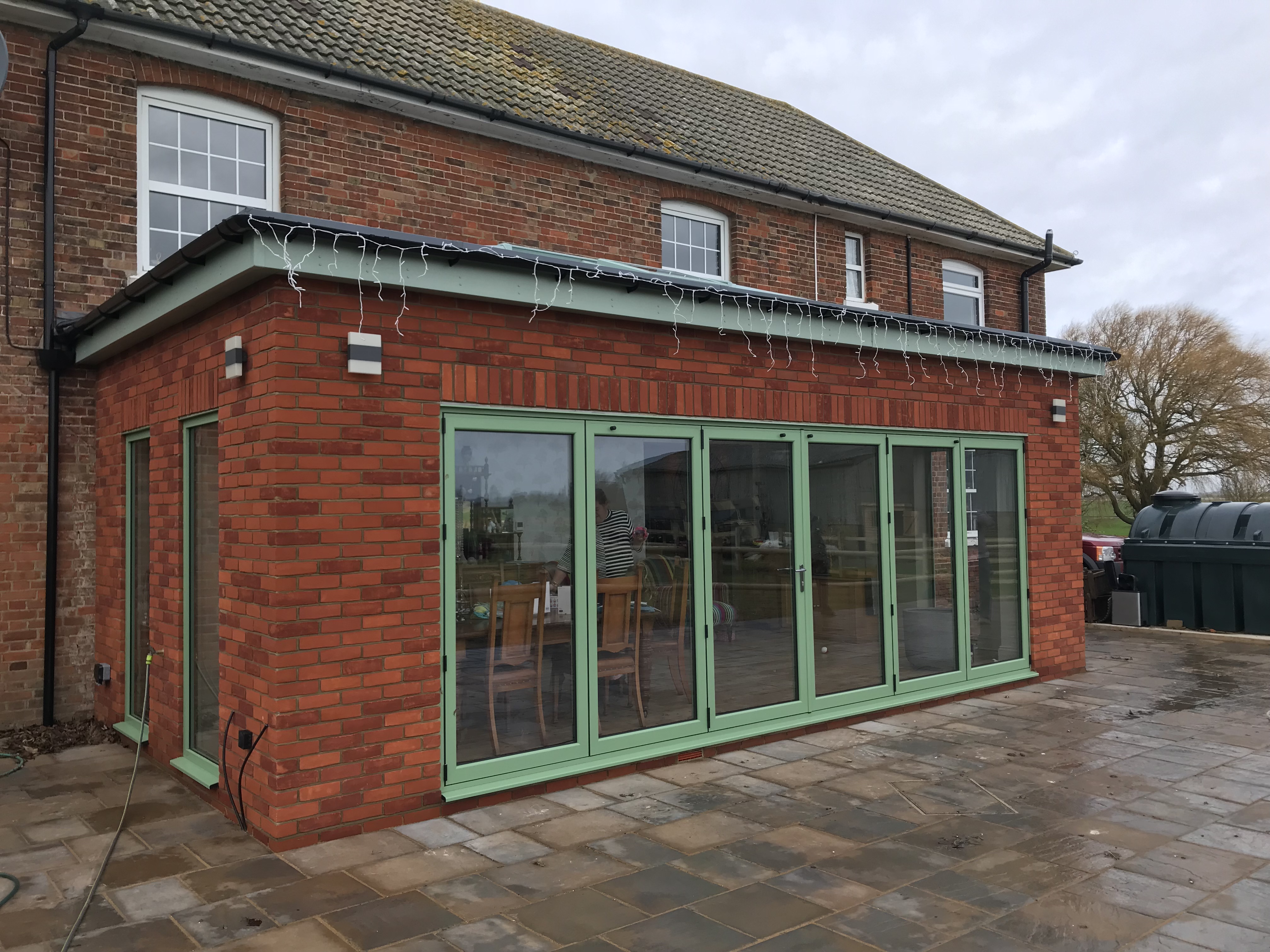 There are many types of door available which can complement your extension. There are patio doors, french doors, bi folding doors and wave/panormaic doors. There are also many colour options and several different material option such as Upvc, timber and aluminium.